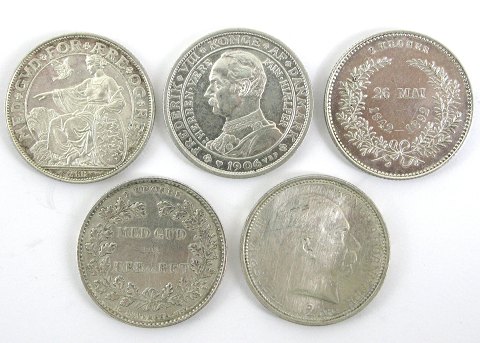 Danmark, erindringsmønter 2 kr. sølv 1888, -92, 1903, -06 og 1912