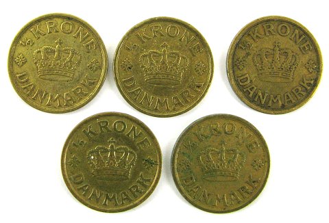 Danmark, Chr. X, ½ kr 1924, -25, -26 og 2x 1940 (5)