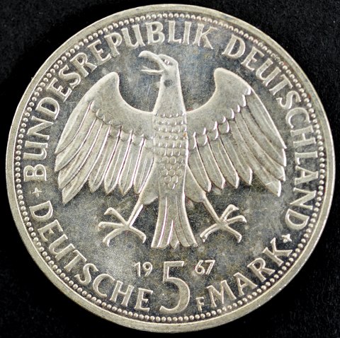 Tyskland, 5 Mark, Sølv, 1967 F, KM 120.1