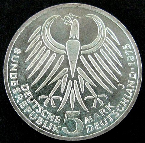 Tyskland, 5 Mark, Sølv, 1975 J, KM 141