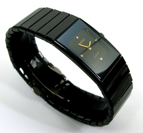 Rado Jubilé damearmbåndsur, ref. nr. 963.350.3 i urkasse af metal med keramisk lænke og urkasse. Sort, rektangulær skive med punktindikation. Quartzværk. Urkasse 19 x 25 mm.