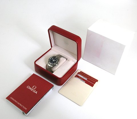 Sort urskive med timemarkeringer. Dato kl. 3. Sort envejs roterende krans. Kasse certifikater og yderboks medfølger.
