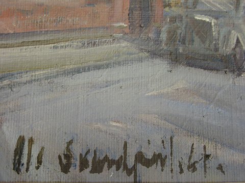 O. Sværdpiil, signeret oliemaleri på lærred uden dato; Byparti fra Aarhus. 51 x 34 cm.