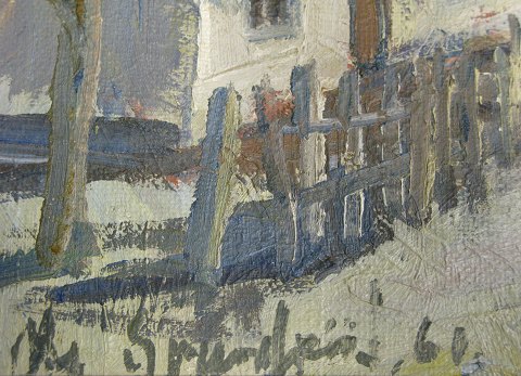 O. Sværdpiil, signeret oliemaleri på lærred , dateret 60; Landsbymotiv. 48 x 33 cm.