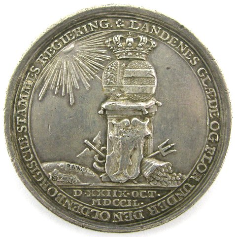 Slået i anledning af huset Oldenburgs 300 års jubilæum. Galster 395. Sølv 40,5mm vægt 30,8 gram