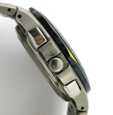 Citizen herrearmbåndsur, ref. nr. JY0040-59L, dedikeret til U.S. Navy opvisnings airshow team *Blue Angels*. Urkasse og lænke af titanium med stålblå skive med analog og digital tidsvisning, stregindikation, central sekundviser og chronographfunktioner. Quartsværk. Urkasse diameter 44 mm.