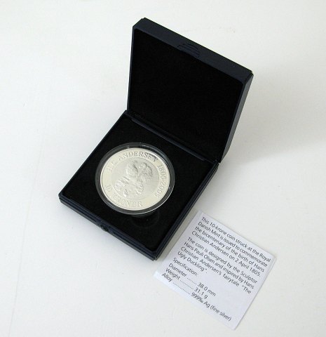 Præget i anledningen af 200 året for H.C. Andersens fødsel. 1 ounce finsølv.
