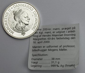 Danmark, 200 kr 2000 FINSØLV - Margrethe II 60 år