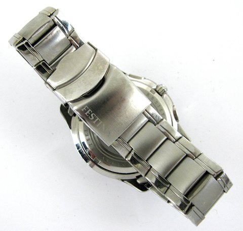 Festina Chronograph herrearmbåndsur, ref. nr. F16291 i urkasse og med lænke af stål. Sølvmetallic struktureret skive med central sekundviser, stregindikation, datovisning i #4½ positionen og chronograph funktioner. Quartsværk, urkasse diameter 42 mm.
