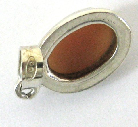 Lille sødt camé vedhæng af sølv, stemplet 800. L. 11 mm.