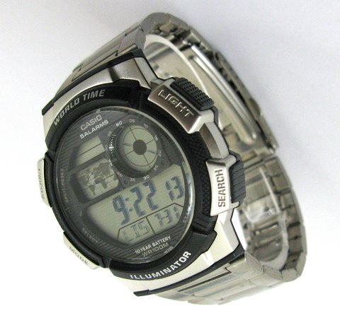Casio digital World Time herrearmbåndsur, ref. nr. 3198 i urkasse og med lænke af stål. sort/digi skive med digitale tids- og 6 alarmfunktioner m.v. Quartsværk. Urkasse diameter 42 mm.