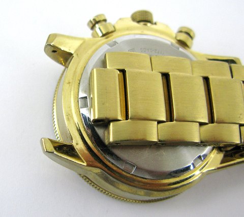 Seiko Solar Chronograph herrearmbåndsur i urkasse og med lænke af guldtonet stål, ref. nr. 174507, sort skive med stregindikation, central og separat sekundviser, datovisning i # 3 positionen, chronographfunktioner. Quartsværk. Urkasse diameter 42 mm.