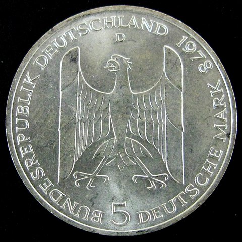Tyskland, 5 Mark, Sølv, 1978 D, KM 147