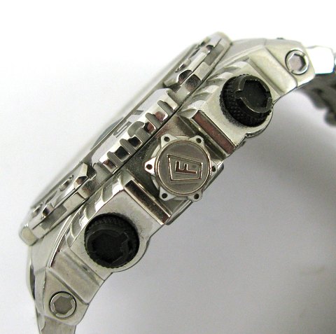Festina chronograph herrearmbåndsur, ref. nr. F16542 i urkasse og med lænke af stål. Sort skive med streg- og talindikation, separat sekundviser, datovisning i #3½ positionen og chronograph funktioner. Quartsværk. Urkasse diameter 48 mm.