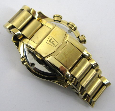 Festina chronograph herrearmbåndsur, ref. nr. F16188/08 i urkasse og med lænke af guldtonet stål. Sort skive med central sekundviser, stregindikation, datovisning i #4 positionen, chronograph funktioner. Quartsværk. Urkasse diameter 44 mm.
