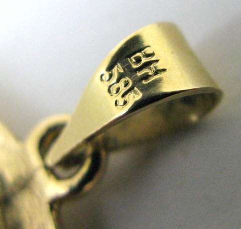 Vedhæng af 14 kt. guld, prydet med ovalt lapis lazuli. L. med øsken 30 mm., vægt 4,3 gr.