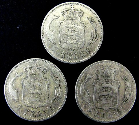 Chr. IX, kr sølv 1875, 1876, 1892 (3) - H 14A