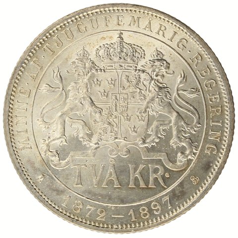 2 kr 1897, slået til minde om Oscar II's 25 års regeringsjubilæum