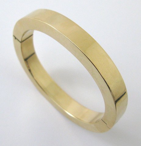 Armring af 14 kt. guld, skinne 9 x 7 mm., indvendig 58 x 52 mm., vægt 28 gr.