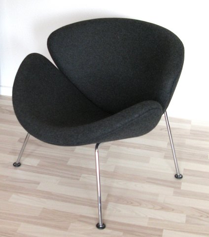 Yderst velholdt hvilestol, designet af Pierre Paulin med forkromet stel, sæde og ryg af mørkegrå Divina uld. 80 x 80 x 84 cm., sæde H. 48 cm.