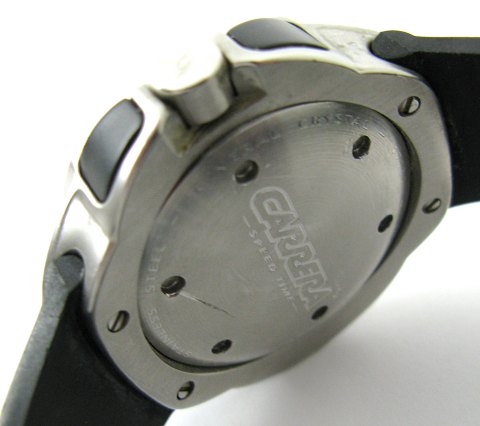 Carrera herrearmbåndsur i oval urkasse af stål med rund hvid skive, arabertal, central og separat sekundviser, dagvisning og datovisning i #4 positionen. Quartsværk. Urkasse 40 x 32 mm. Gummirem med metalspænde.