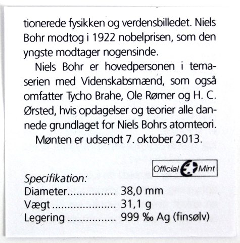 500 kr 2013 sølv *Niels Bohr 1885-1962*