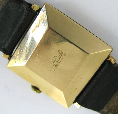 Eversal herrearmbåndsur i urkasse af 18 kt. guld. Ligesidet skive bag plaxiglas med stregindikation, central sekundviser og datovisning ved #4½ positionen. Automatisk værk. Urkasse 29 x 29 mm.