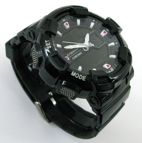 Calypso Chrono digital/analog herrearmbåndsur i sort urkasse af metal/kunststof og lænke af sort plast med metalspænde. Digital tidstagning med alarm, chronograph og tidstagningsfunktioner. Quartsværk. Urkasse diameter 48 mm.