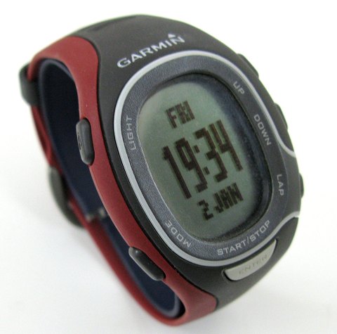Garmin FR60 løbeur bestående af armbåndsur med tidsmåler, GPS og pulsmåler m.v.
