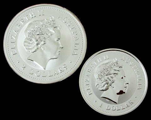 Australien, 1 og 2 dollars finsølv 2004 - *Kookaburra sæt*