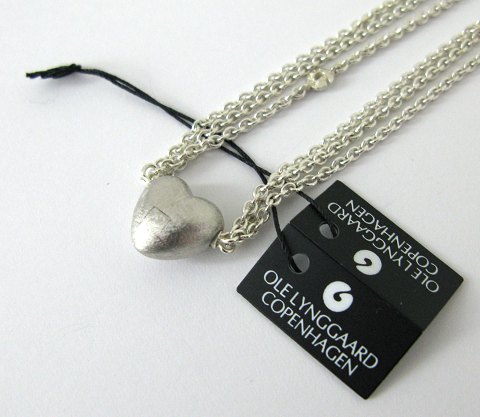 Ole Lynggaard, treradet armlænke af sterling sølv med hjertelås af 18 kt. hvidguld. Lænke L. 18 cm., hjertelås 11 x 12 mm.