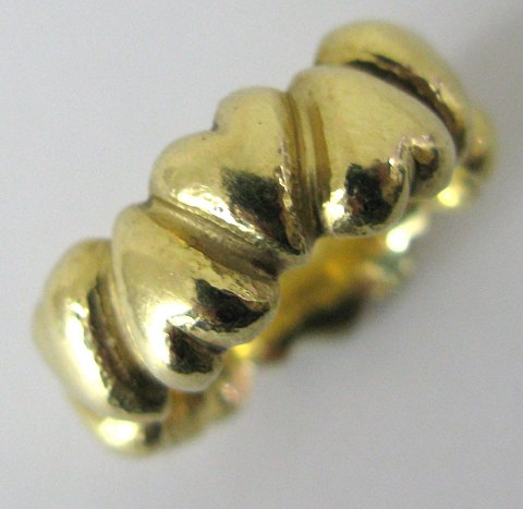 Ring af 14 kt. guld med skinne i form af hjerter i forløb. Ring str. 51, vægt 11,7 gr.
