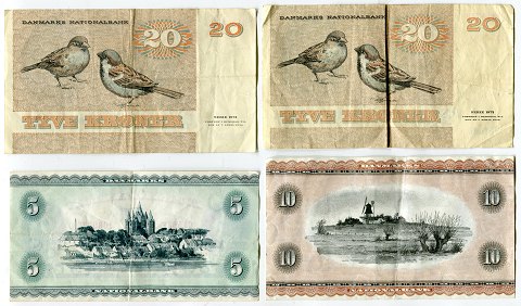Danmark, 5 kr, 10 kr og 2x 20 kr 1959-1988 (4)