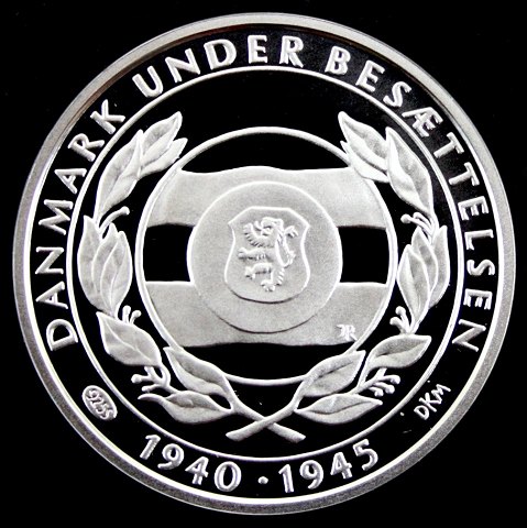 Sølvmedaille fra serien Danmark under besættelsen 1940-45. Slået på den Kongelige Mønt. Vægt 27,03 gram - diameter 36mm. Indeholder 25 gr finsølv.