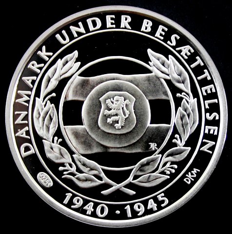 Sølvmedaille fra serien Danmark under besættelsen 1940-45. Slået på den Kongelige Mønt. Vægt 27,03 gram - diameter 36mm. Indeholder 25 gr finsølv.