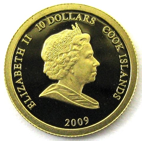 Cook Islands, 10 dollars 2009 finguld - proof - KM 1232