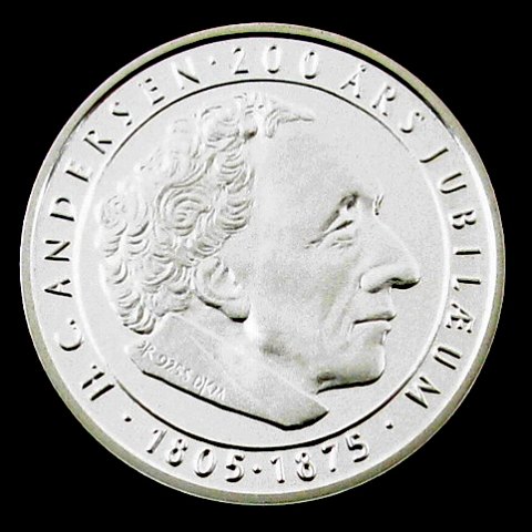 H.C. Andersen "Lille Claus og store Claus" medalje i sterling, præget i anledning af digterens 200 års jubilæum 2005. Vægt: 27,20 gr.