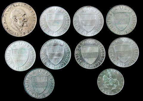 Østrig, 25, 10 og 5 Schilling sølv - diverse årgange (10)