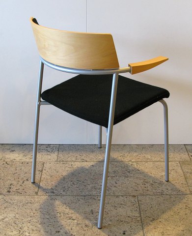 Randers + Radius design armstol med metallic lakeret stel, sæde betrukket med sortfarvet stof. Sæde H. ca. 47 cm., Ryg H. 76 cm. Stolen fremstår ubrugt.