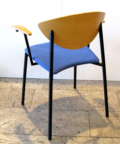 Randers + Radius design armstol med sortlakeret stel, sæde betrukket med blåt stof. Sæde H. ca. 47 cm., Ryg H. 76 cm. Stolen fremstår ubrugt.