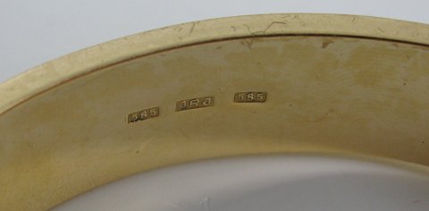 Armring af guld 14 kt., gedigent dansk arbejde graveret med rocailler.