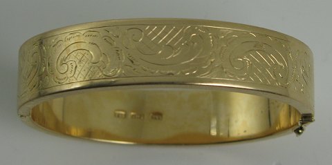 Armring af guld 14 kt., gedigent dansk arbejde graveret med rocailler.