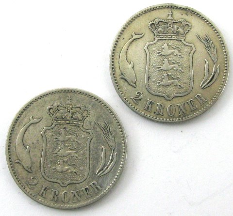 Chr. IX, 2 kr sølv 1875 og 1876. (2) - H 13A