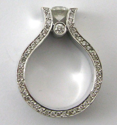 Ring af 18 kt. hvidguld, prydet med brillantsleben damant på 0,75 ct., brillantslebne diamant 0,05 ct. samt 96 mindre, brillantslebne diamanter, samlet ca. 1,30 ct. Vægt 13,5 gr. Ring Str. 55