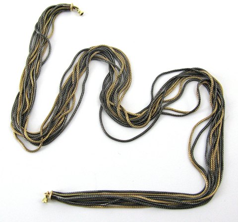 Halscollier af guld og sølv, tiradet, (4 guld og 6 sølv) beregnet til Ole Lynggaard kuglelås.