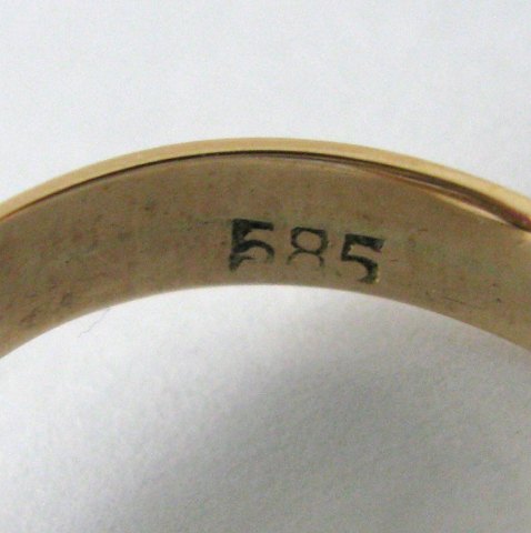 Ring af 14 kt. guld med slangeformet cross-over skinne, prydet med facetsleben smaragd og rubin. Ring Str. 51