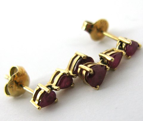 Par ørestikker af 14 kt. guld med 3 rubiner