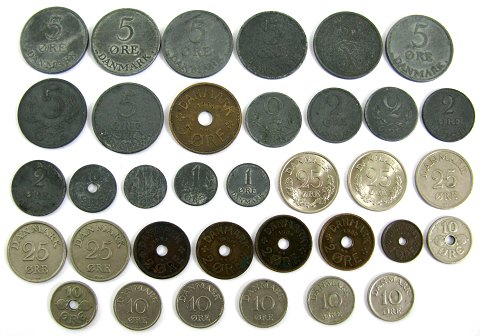 Christian X / Frederik IX samling 1, 2, 5, 10 og 25 øre og 2 kr (38)