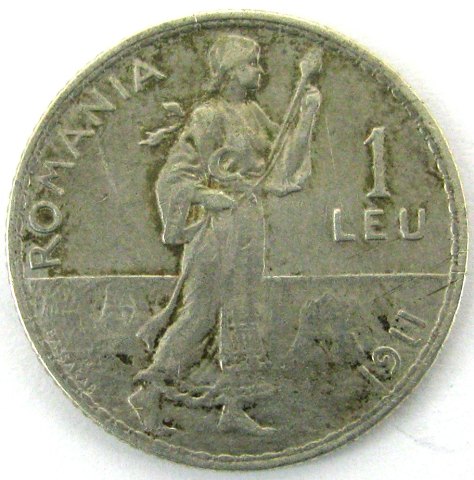 Rumænien, 1 Leu, 1911, Kong Carol 1, Sølv, KM 42