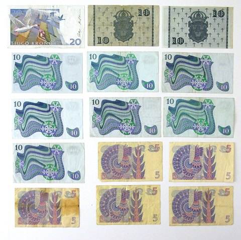 Sverige, samling 20 kr, 10 kr og 5 kr 1950 - 1990
